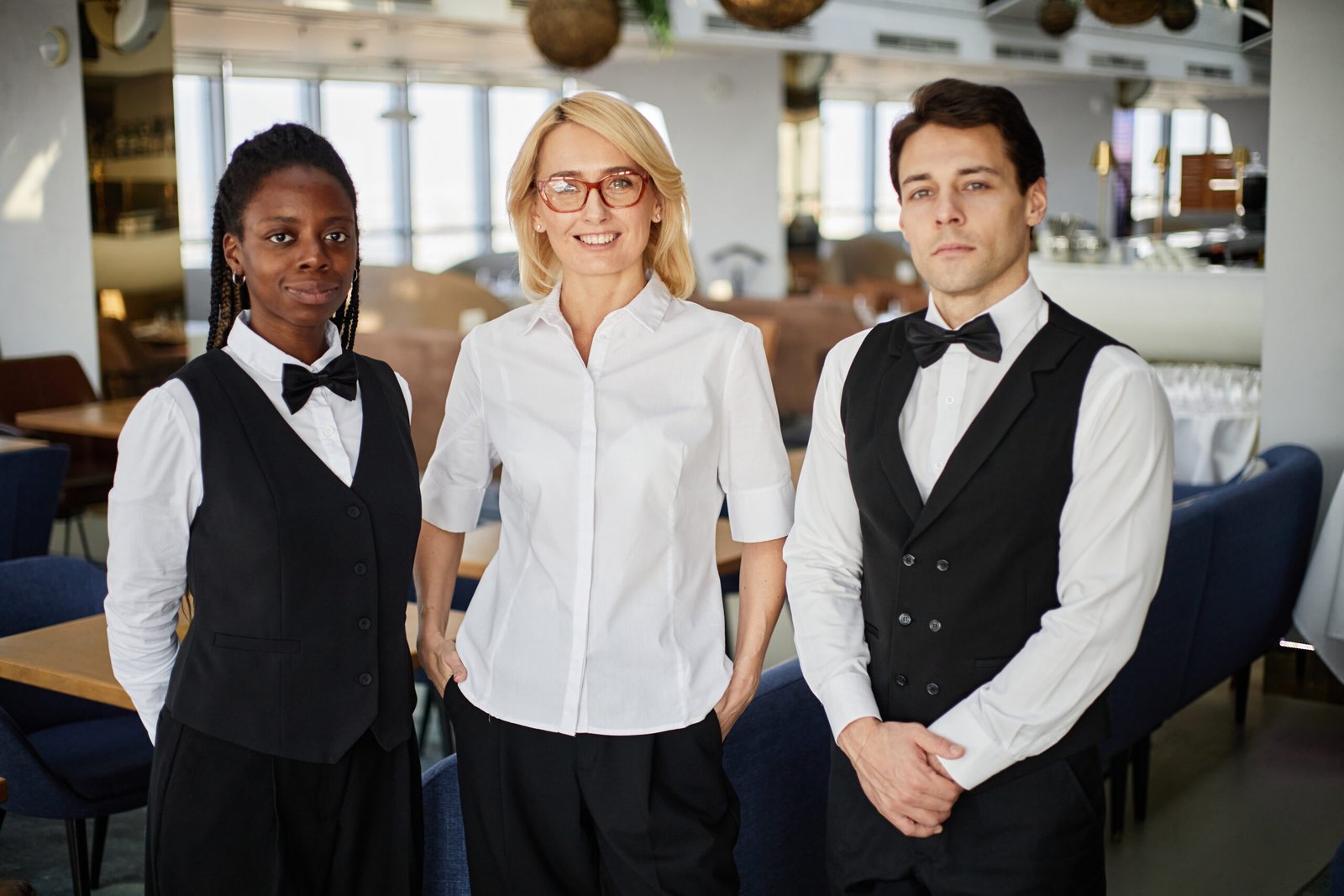 Elegant and functional uniforms for hotels, restaurants, and airlines.